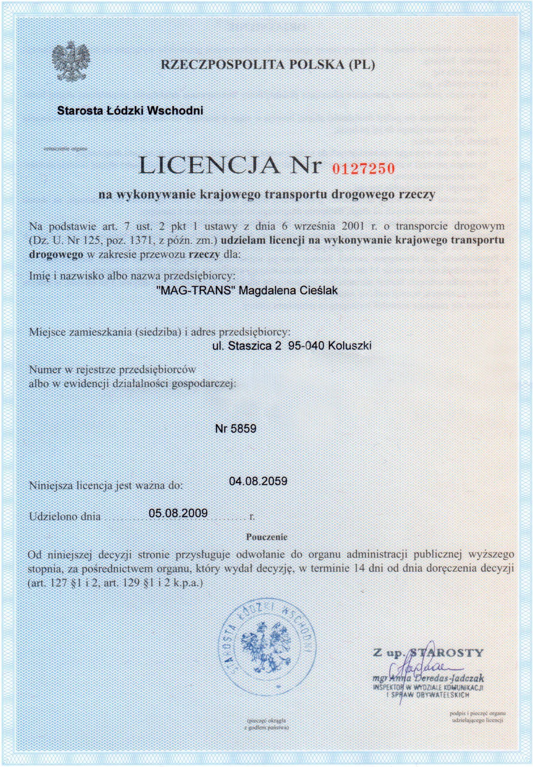 Posiadamy niezbędne uprawnienia do wykonywania usługi transportu paliw.